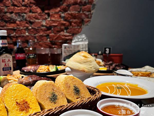 優來客牛排館的每份套餐均附贈紅茶、香烤軟法麵包、沙拉、酥皮濃湯、甜點!